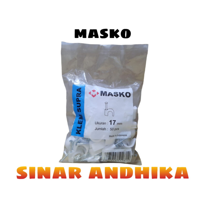 Jenis barang : Klem Kabel Masko Supra Paku Beto Ukuran 17 MM ISI 50 Pcs