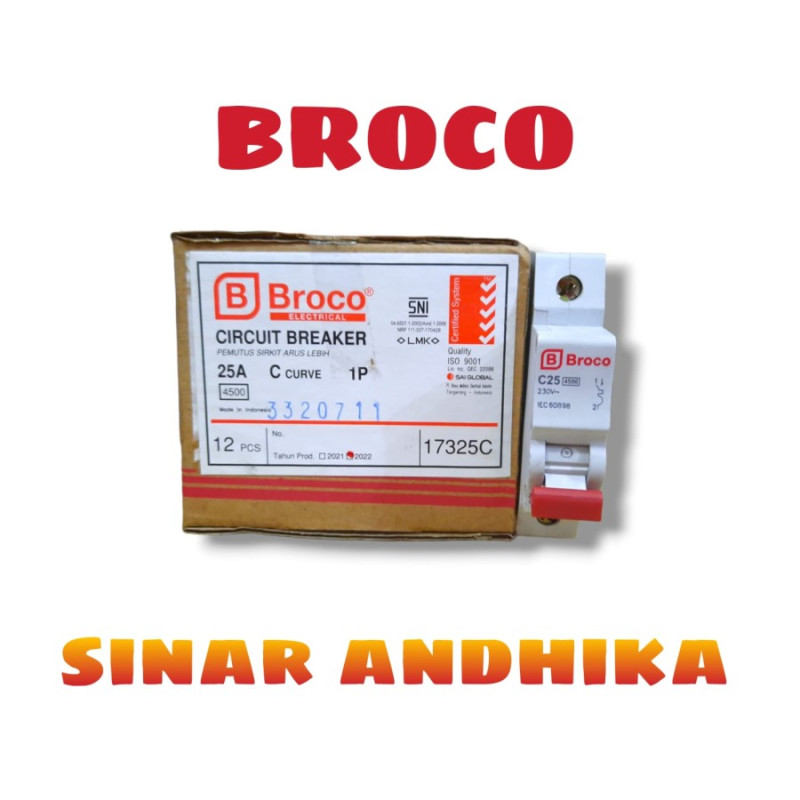Harga di atas adalah harga untuk 1 buah Mcb Broco 25Amp Electrical 1 Phase