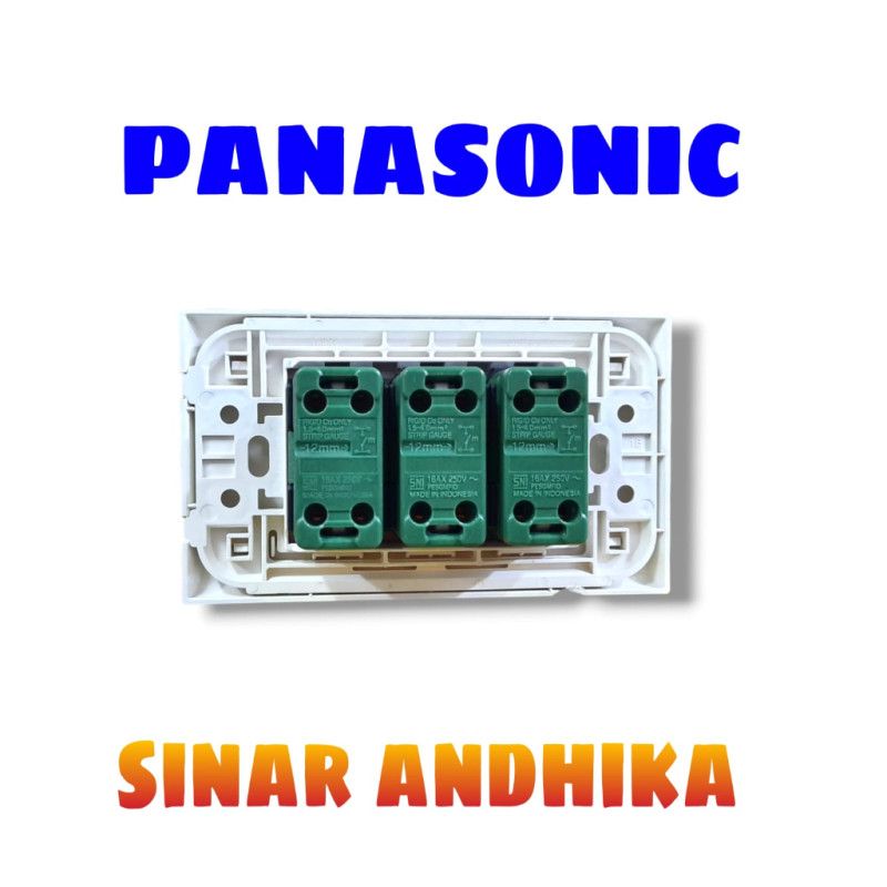 Jenis Barang : Saklar Triple kecil Silver Glow (Style E) Panasonic Wehj6803W + Wesj 5931Mws.