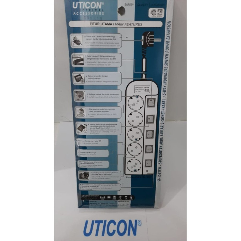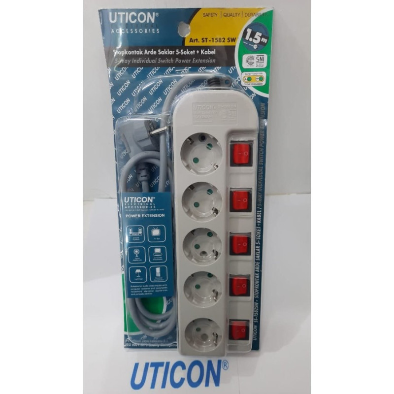 Jenis barang : Stop Kontak Uticon 5 Lubang + Saklar On-Off Kabel 1.5M St-1582 Sw